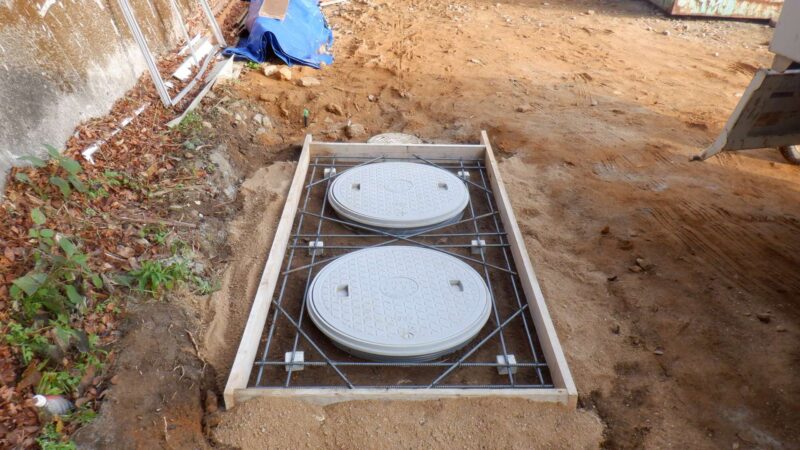 新築戸建て現場にて5人槽の埋設工事