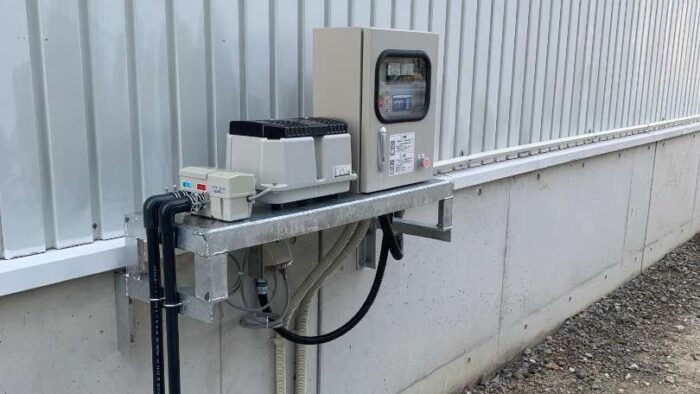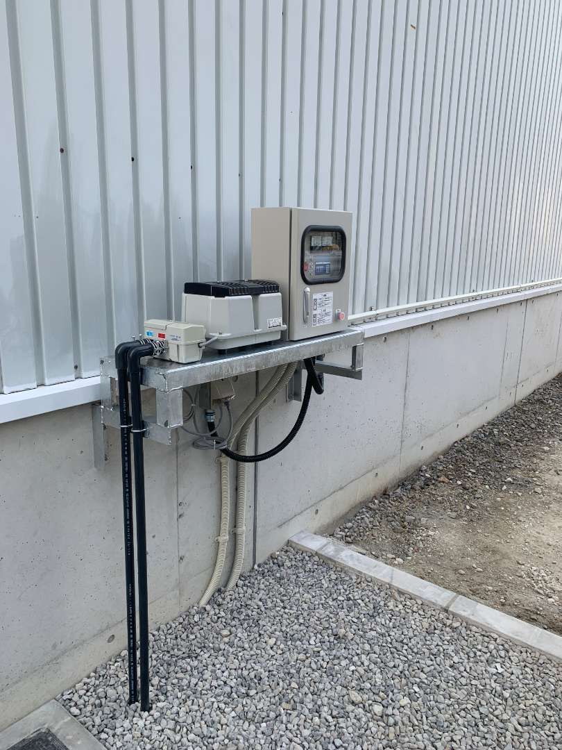 可愛らしい制御盤とブロワを架台つくって設置しました。