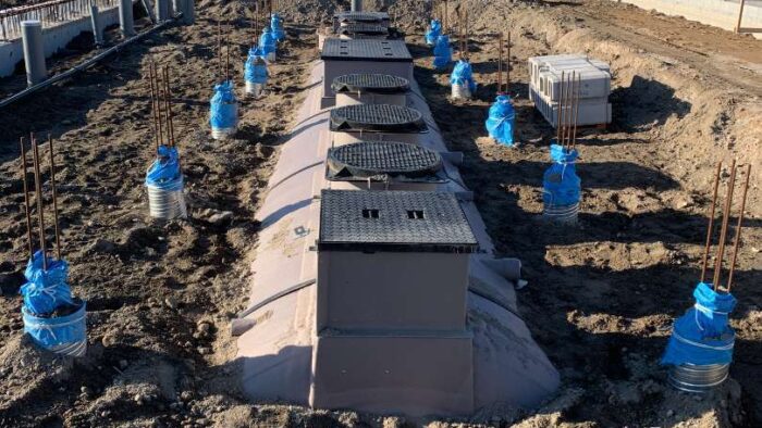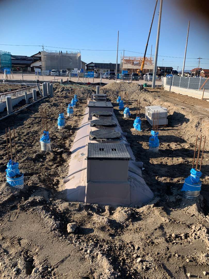 米子での某大手商業施設の新設合併浄化槽。FRPで10m近くの浄化槽です。